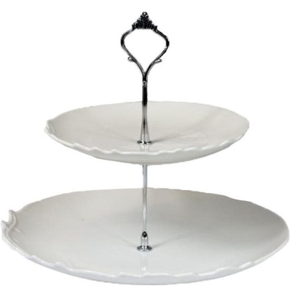 Biała Dwupiętrowa Patera z Uchwytem na Ciasta i Słodycze