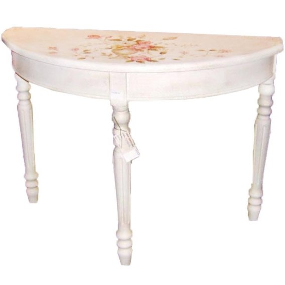 Biała Konsola Prowansalska z Ręcznie Malowanymi Kwiatami