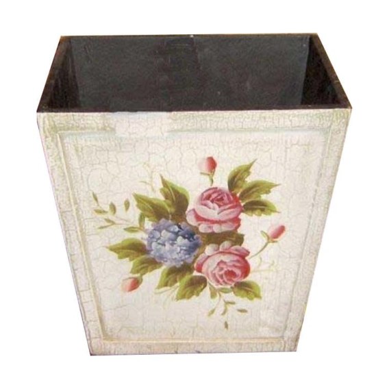 Biały Ozdobny Kosz/Doniczka Styl Prowansja z Ręcznie Malowanymi Motywami Kwiatowymi