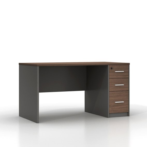 Stylowe, solidne i funkcjonalne biurko do biura i home office. Blat 140 × 70 cm zapewnia wygodną przestrzeń pracy, a zestawienie ciemnego dębu (teak) z matową szarością dodaje wnętrzu charakteru.