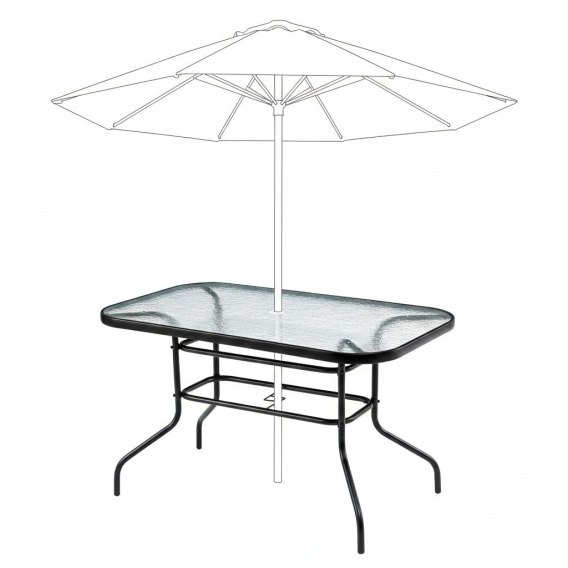 Duży szklany stół ogrodowy na taras balkon 120x70 transparentny otwór na parasol