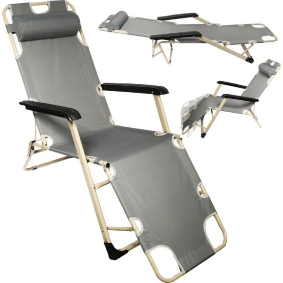 OXFORD LEŻAK FOTEL OGRODOWY SKŁADANY STABILNY I WYGODNY, IDEALNY DO OGRODU, NA TARAS I NA PLAŻĘ Solidny składany leżak / fotel wypoczynkowy. Stelaż wykonany z wytrzymałego metalu malowanego proszkowo. Możliwość ustawienia w trzech pozycjach: leżąca półleżąca półsiedząca Zdejmowany podgłówek. Po złożeniu zajmuje mało miejsca, łatwy w przechowywaniu. Wymiary: szerokość siedziska - 47cm wysokość od ziemi do szczytu oparcia - 93 cm długość całkowita - 178 cm szerokość całkowita - 61cm Wymiary po złożeniu: wysokość - 98 cm szerokość - 61 cm Kolor stelarza: złoty Kolor siedziska: szary