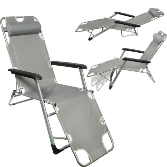 OXFORD LEŻAK FOTEL OGRODOWY SKŁADANY STABILNY I WYGODNY, IDEALNY DO OGRODU, NA TARAS I NA PLAŻĘ Solidny składany leżak / fotel wypoczynkowy. Stelaż wykonany z wytrzymałego metalu malowanego proszkowo. Możliwość ustawienia w trzech pozycjach: leżąca półleżąca półsiedząca Zdejmowany podgłówek. Po złożeniu zajmuje mało miejsca, łatwy w przechowywaniu. Wymiary: szerokość siedziska - 47cm wysokość od ziemi do szczytu oparcia - 93 cm długość całkowita - 178 cm szerokość całkowita - 61cm Wymiary po złożeniu: wysokość - 98 cm szerokość - 61 cm Kolor stelarza: srebrny Kolor siedziska: szary